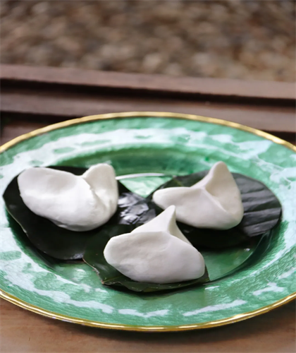 在云南省臨滄市臨翔區(qū)平村彝族傣族鄉(xiāng),有一道傳統(tǒng)小吃——三角粑粑,當(dāng)?shù)赜址Q為“三尖角粑粑”,這是一種用米面包裹多種餡料制作而成的蒸制美食。三角粑粑皮薄餡多、鮮美香甜、糯而不膩,吃一口就甜到心里。該項制作技藝被列入臨翔區(qū)第三批非物質(zhì)文化遺產(chǎn)代表性項目。米浸泡一夜后磨成米漿,把米漿放入紗布內(nèi)瀝干水分,就會得到濕米粉。取十分之一的濕米粉用水煮,將煮熟的濕米粉與剩下的濕米粉混合后充分揉勻,平村三角粑粑外皮軟糯但不失韌性的秘訣就在于此。小火慢炒花生,炒香后摏碎加入紅糖或白糖混合均勻,香香甜甜的餡料就準(zhǔn)備好了。接下來就是定型環(huán)節(jié)了,取一小份米粉捏成杯狀,把餡料放入米粉杯中,封口后捏成三角形狀,這是個熟能生巧的過程。最后就是蒸制環(huán)節(jié),將捏好的三角粑粑放在粑粑葉上,放入鍋中蒸熟即可。