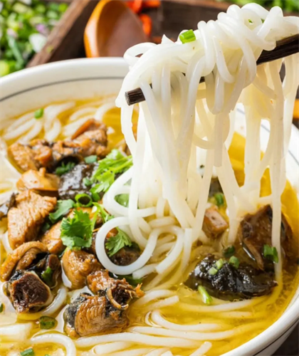 云縣雞肉米線講究“三料一湯”。三料即主料、輔料、佐料。主料是滇西優(yōu)質(zhì)稻米制成的米線,質(zhì)地細軟而有韌性,口感甘醇。輔料則是山地烏骨雞,肉質(zhì)鮮美,原汁原味。佐料則包括辣椒油、阿佤芫荽、蔥、醬油、味精等,讓整碗米線更加鮮美可口。