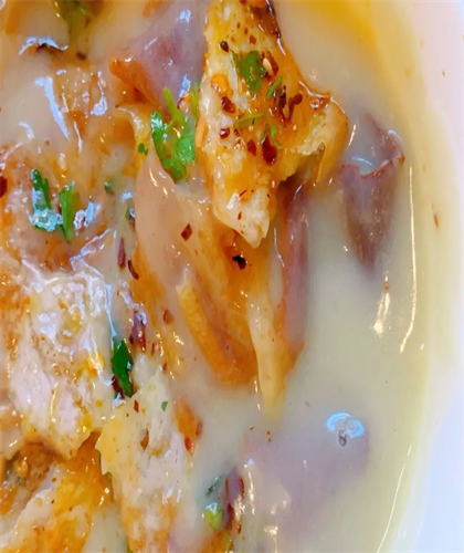 制作過程更是匠心獨運。米線用滾湯燙熱撈出,加入新鮮雞肉湯,再蓋上鹵雞汁雞塊。紅紅的辣椒油、翠綠的阿佤芫荽、金黃的蔥花……一碗色香味俱佳的云縣雞肉米線就呈現(xiàn)在眼前了。云縣雞肉米線的最大亮點在于雞肉。燉得香濃的烏雞肉散發(fā)著誘人的香氣,口感有嚼勁、肉緊、雞皮入口即化。此外,鹵雞腿、雞翅等也是不可或缺的配料。而豬皮油辣子則為整碗米線增添了不少主角光環(huán)。雞血的鮮嫩和油辣子里豬皮的脆爽口感相得益彰,讓人回味無窮。